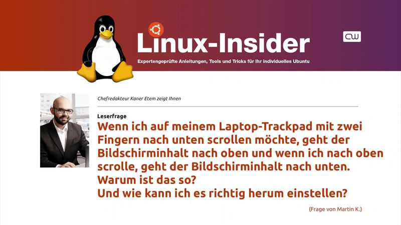 Sehr geehrte Leser, bei Ihrer Erkundung der Linux-Welt stehen wir Ihnen gern zur Seite. Denn Fragen tauchen nicht nur bei neuen Anwendern auf, sondern gelegentlich auch bei „alten Hasen“. Die interessantesten Leserfragen veröffentlichen wir an dieser Stelle. „Warum ist die Scrollrichtung auf meinem Laptop-Trackpad falsch herum?“ Frage: Wenn ich auf meinem Laptop-Trackpad mit zwei Fingern