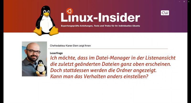 Neben dem Browser ist er das meistgenutzte „Programm“ auf Ubuntu Linux: der Datei-Manager. Da die Organisation unserer Dateien und Ordner ein wichtiger Stützpfeiler für die Arbeit am Rechner ist, zeige ich Ihnen hier ein paar versteckte Einstellungen, die Ihnen den Alltag erleichtern. Der Datei-Manager von Ubuntu Linux ist übersichtlich, aufgeräumt und somit schon von Haus